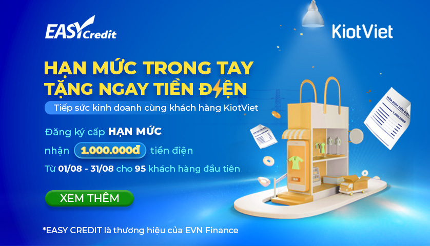 THÁNG 8 VAY EASY CREDIT TRÊN KIOTVIET: HẠN MỨC TRONG TAY – TẶNG NGAY TIỀN ĐIỆN