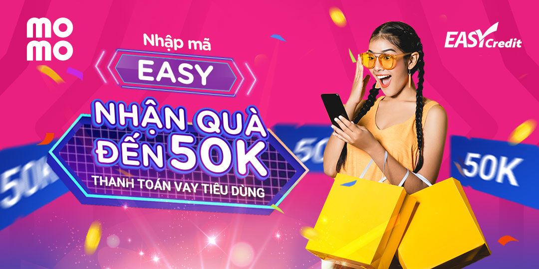 Mùa hè này, EASY CREDIT cùng Ví MOMO mang đến cho khách hàng chương trình ưu đãi đặc biệt: NHẬP MÃ EASY, NHẬN QUÀ ĐẾN 50K KHI THANH TOÁN KHOẢN VAY EASY CREDIT