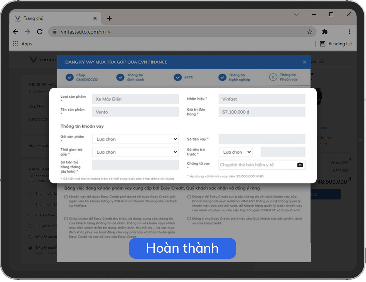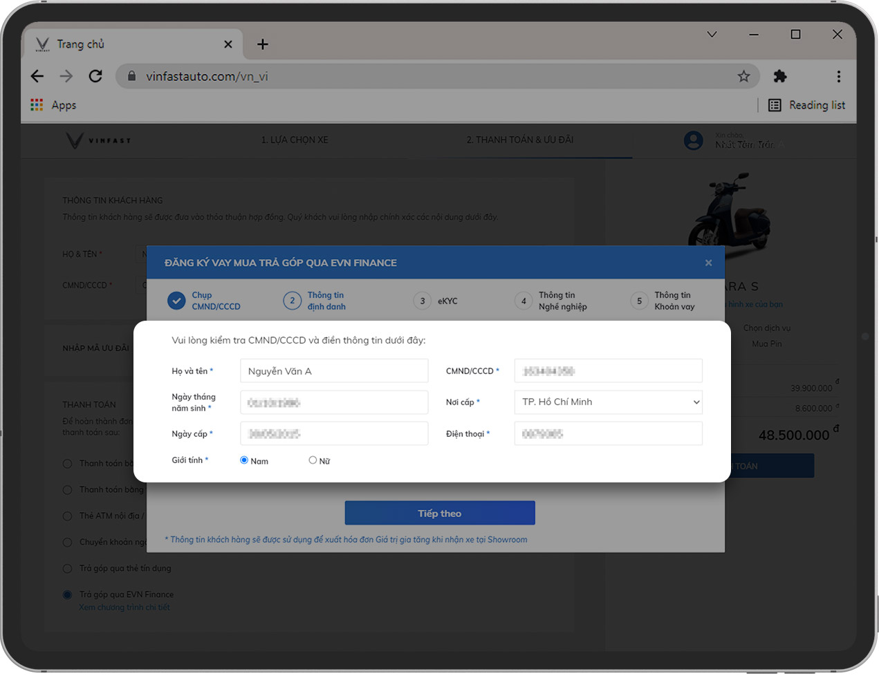 CHI TIẾT QUY TRÌNH ĐĂNG KÝ TRẢ GÓP XE MÁY ĐIỆN QUA EVNFINANCE